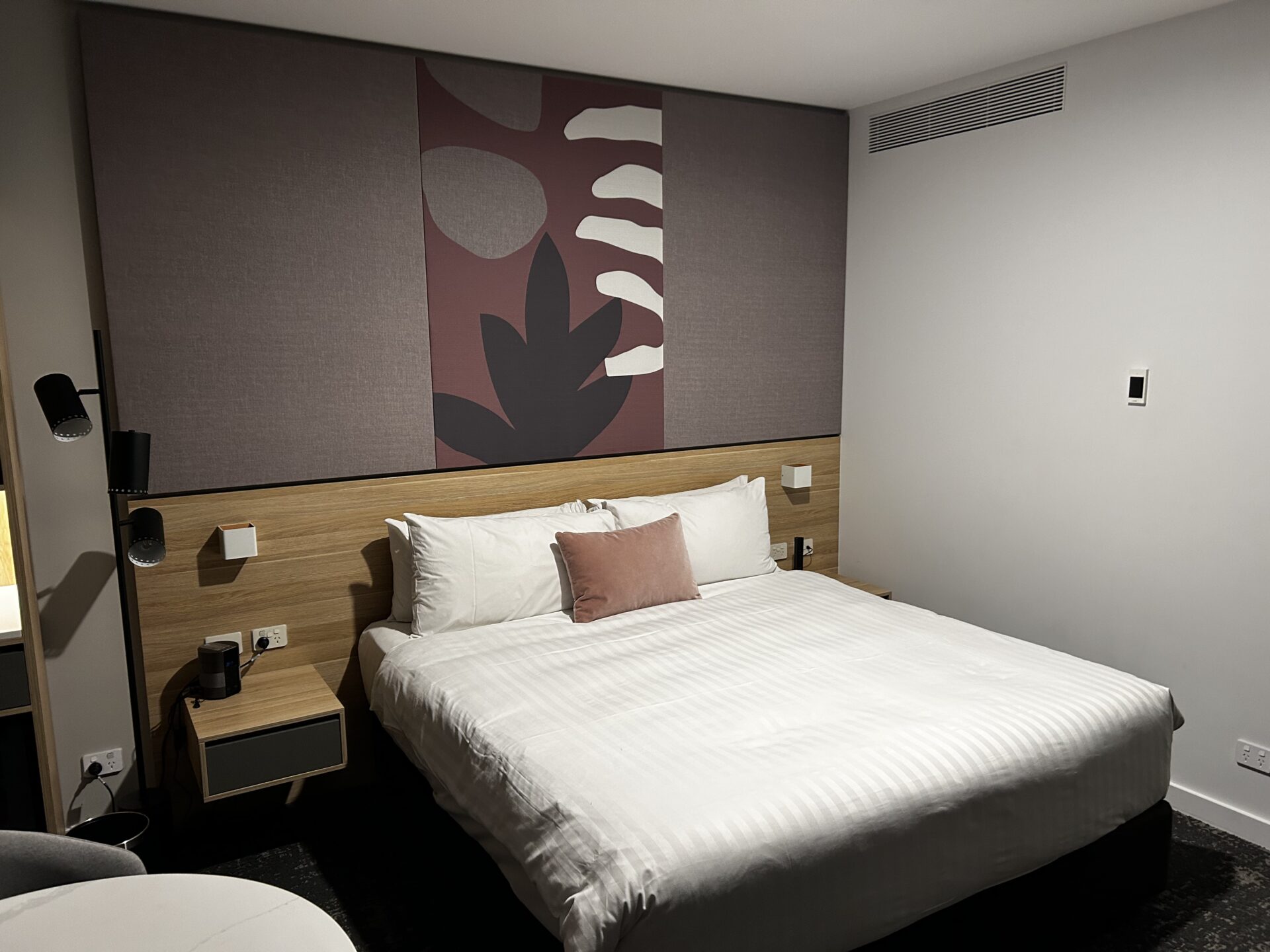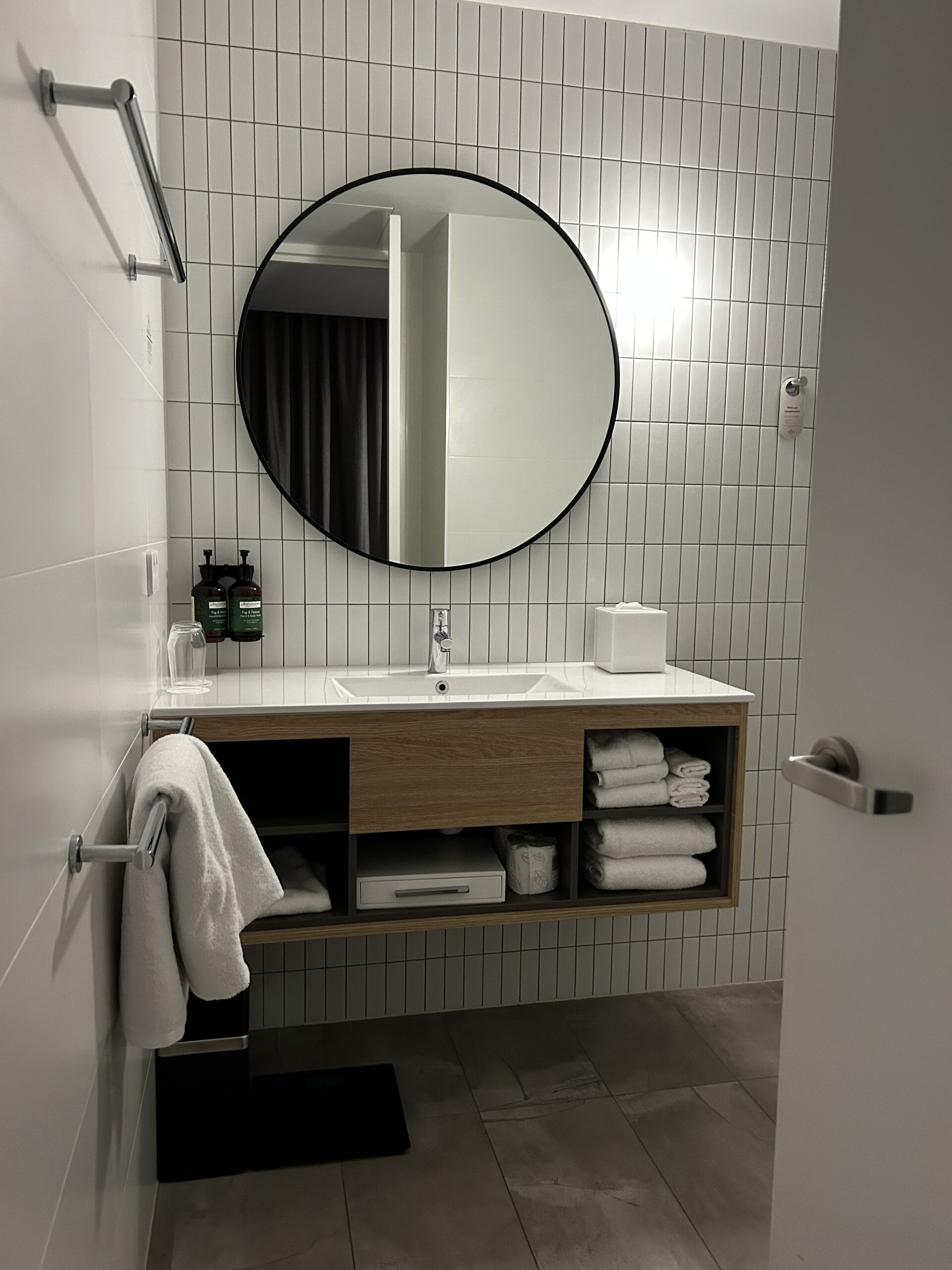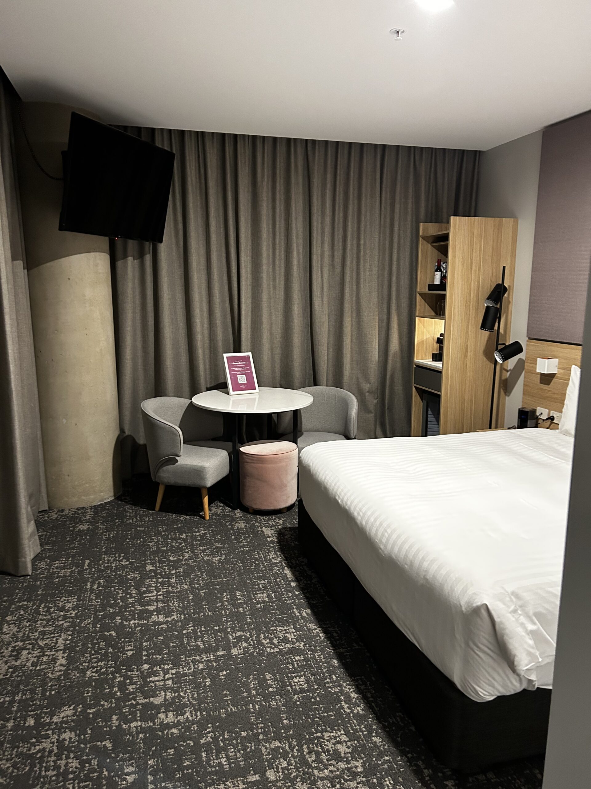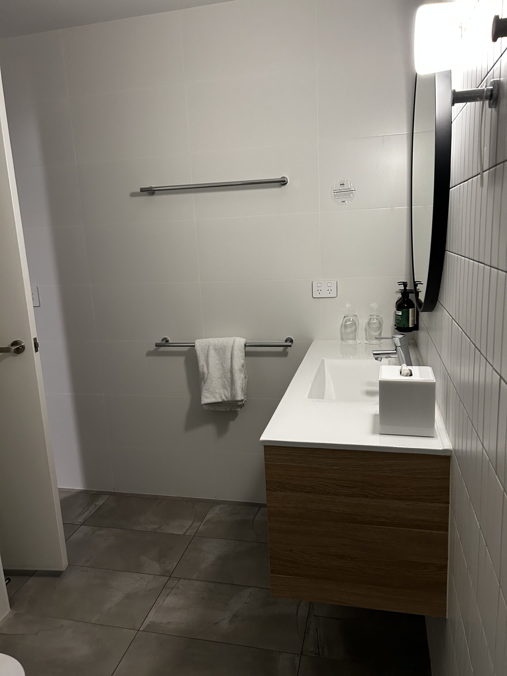 Zum Hotel selbst lässt sich einiges sagen. Man merkt schon den Stil der IHG Gruppe, wenn man eines betritt. Die Materialien wie Teppiche, Bäder, aber auch Empfangsbereiche haben einen ähnlichen architektonischen Stil. Konkreter ist es dieser Industriecharme, ein Mix aus unverputzten Wänden und Säulen, bis hin zu einer gewissen Internationalität, welche bei einer weltweit agierenden Hotelgruppe Sinn macht. Es ist ja auch genau das, warum Menschen immer wieder einer Marke treu bleiben, die Wiedererkennung. Das Zimmer hat ca.25 qm, verfügt über bodentiefe Panoramafenster, das Bad ist sauber und bietet ebenfalls soviel Platz um sich auch einmal drehen zu können. Die Dusche ist eben, was den Einstieg doch vereinfacht und Sicherheit gibt. Die Duschartikel machen einen wertigen Eindruck und sind von Antipodes, einer renommierten neuseeländischen Marke. https://antipodesnature.com/ Die Minibar ist gut bestückt und hält je einen australischen Weiß- und Rotwein parat, natürlich vom renommierten und auch sehr bekannten Weingut Penfolds. Auch außerhalb hat man die gute Möglichkeit eine Runde im Pool zu schwimmen oder die Gym zu besuchen, um fit zu bleiben. Frühstück wird von 7:00 bis 11:00 Uhr serviert und die Bar „Luna“ bietet bis 23:00 eine kleine Karte von Hamburger bis Fish&Chips, sowie eine breite Auswahl an Getränken, wie Cocktails.