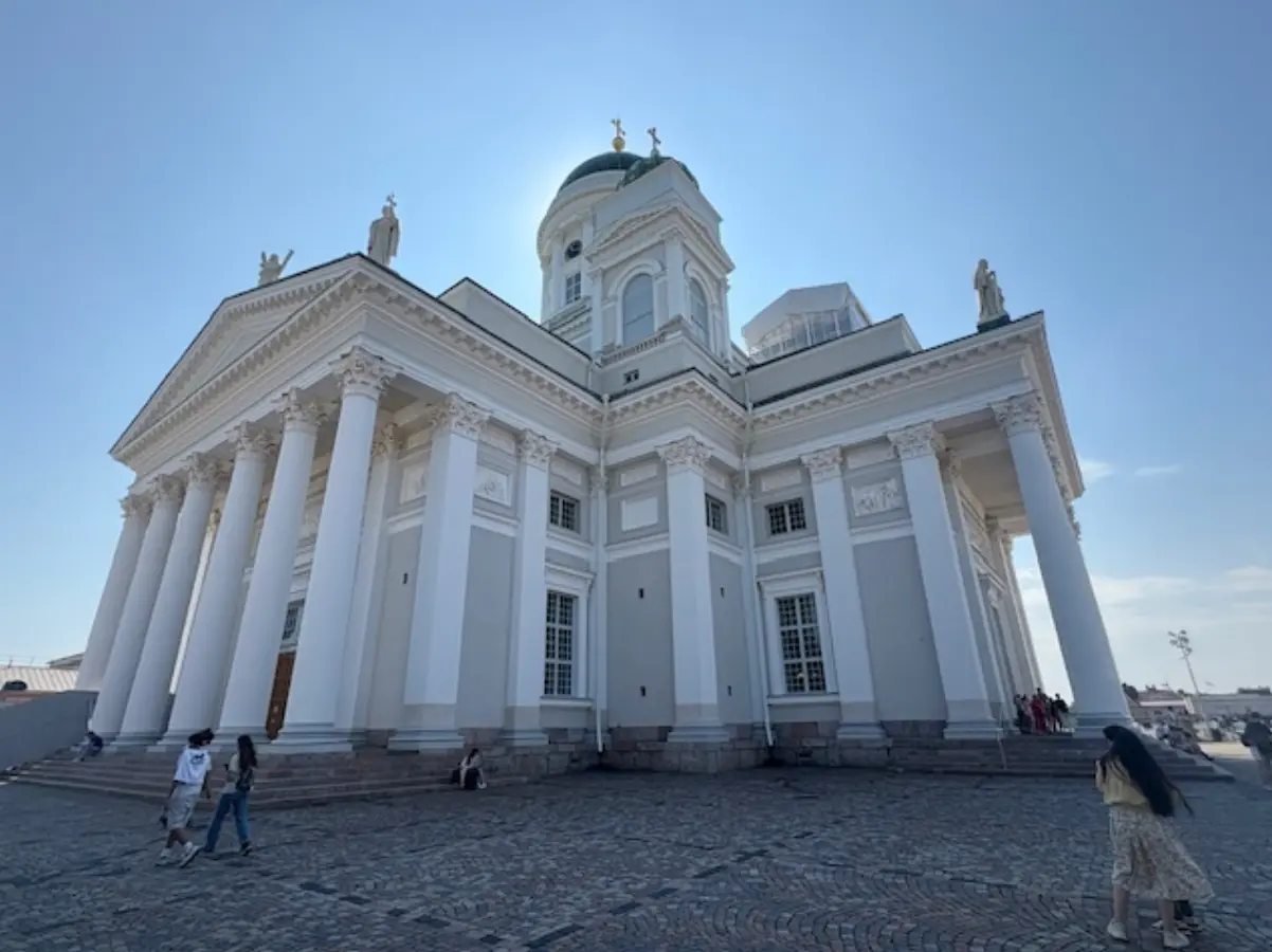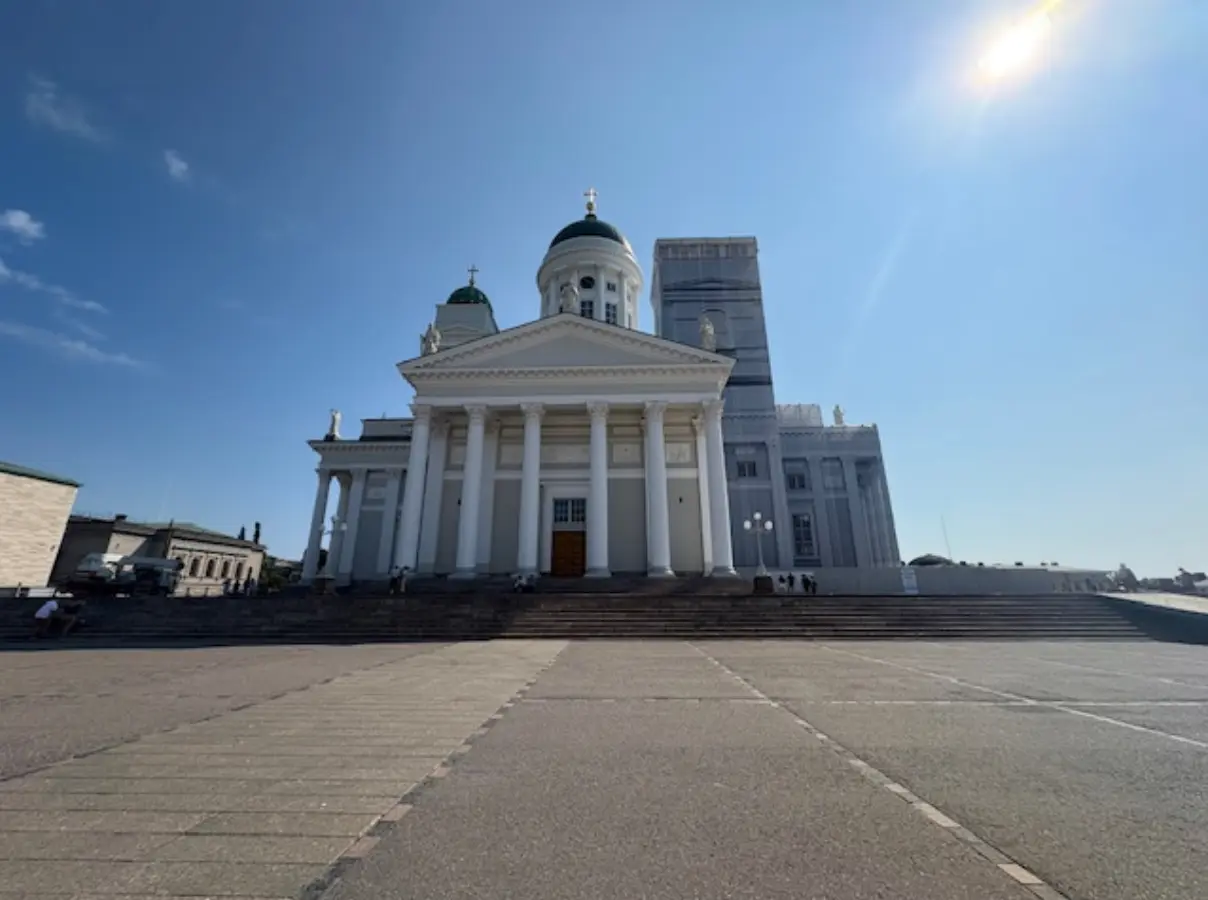 In Helsinki selbst trifft der allgemeine Tourist auf eine gute Infrastruktur, viel Design und jede Menge Geschichte. Erste Anlaufstation ist der weiße Dom, welcher aktuell teilweise wegen Renovierungsarbeiten verhüllt ist. Architekt Carl Ludwig Engel, ein Deutscher aus Berlin-Charlottenburg der 1818 nach Veränderung suchte, durfte hier sein Können unter Beweis stellen. Das Bauwerk besticht, wie auch der Name schon sagt, durch die massive schneeweiße Fassade mit seinen Säulen und wurde im Empirestil erbaut.