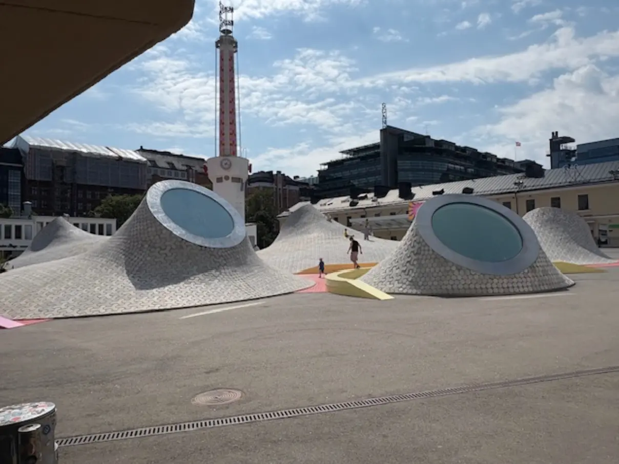 Auf dem Fußweg zurück zum Hotel ist das unterirdisch liegende Amos Rex Museum einen Stop wert. Naja zumindest auf das futuristische und leicht surreal wirkende architektonische Dach geht es mit beiden Füßen. Es werden Stücke von Nachwuchskünstlern als auch postimpressionistische Werke aus der Sammlung des Architekten Sigurd Frosterus gezeigt, die allerdings bis zum nächsten Mal warten müssen. Hintergrund hierfür ist die Weiterreise nach Osaka, welche ansteht.