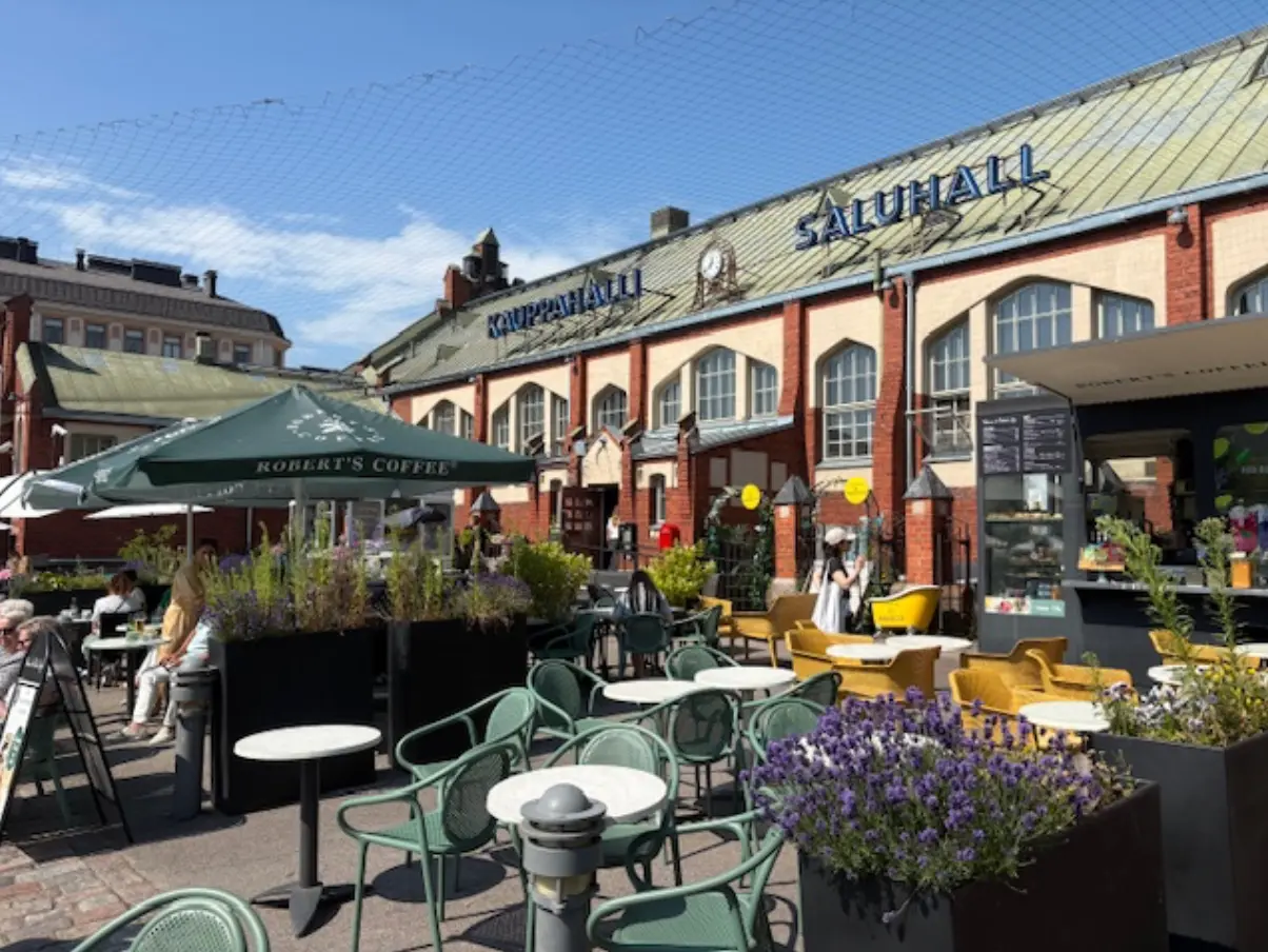 Der Stadt-Spaziergang führt anschließend über den Marktplatz Kauppatori und den Esplanadi Park, zur Hietalathi-Markthalle. Diese empfiehlt sich laut Reiseführer durch die lokale Kulinarik, was mich vor Ort nicht so richtig abholt. Unter anderem gibt sich Japan die Klinke in die Hand, es scheint ganz so das dieses Land durch die Direktverbindung hierher hoch im Kurs steht, aber auch indische Curry´s finden sich. Mir fehlt ein wenig die Authenzität, zudem sind einige Flächen gar nicht belegt und es kommt ein Gefühl von einem „sterbenden Schwan“ auf. Trotzdem lädt bei Sonnenschein der Außenbereich auf ein Getränk ein und lässt die Zeit nur so dahin schmelzen.