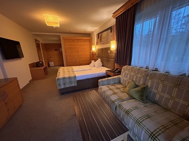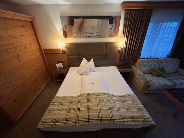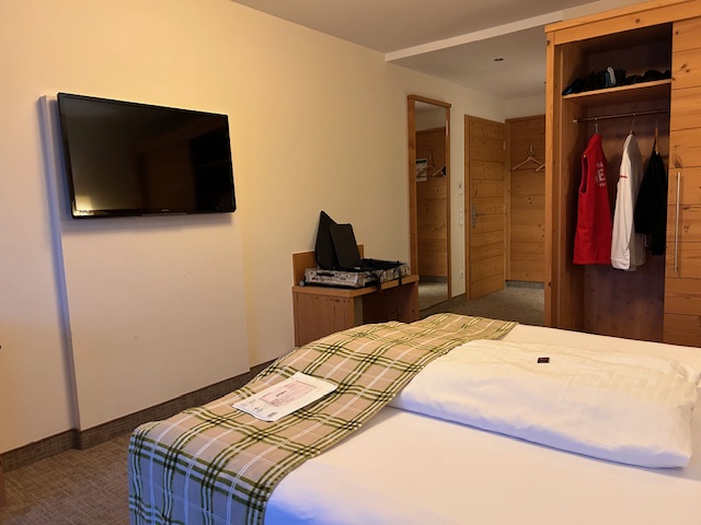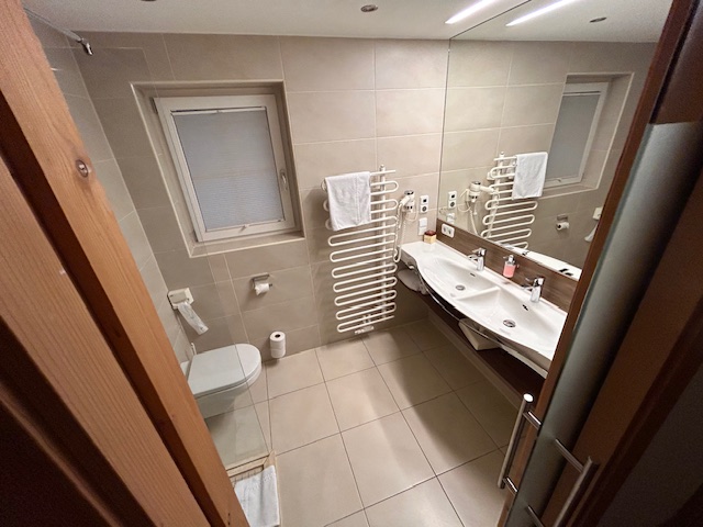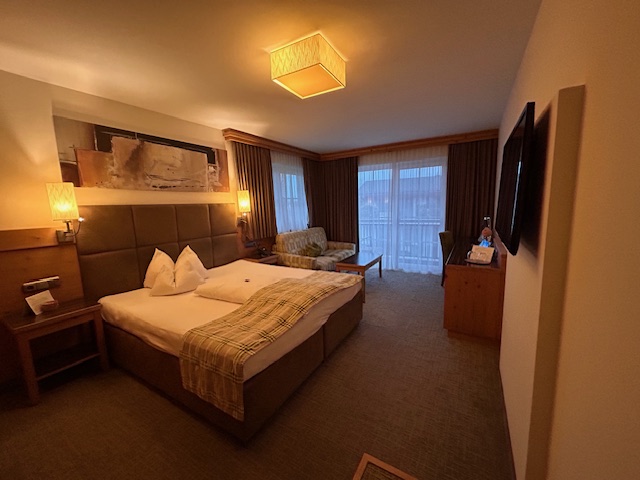 Die Zimmer sind modern und regional eingerichtet. Holzvertäfelung, Teppichboden was Geschmackssache ist und ein Balkon laden zur Übernachtung ein. Die Kategorien starten mit dem Einzel- und 20 qm, Doppel- mit 25-28 qm sowie dem gleich großen Dreibett- und einem Familienzimmer, in dem 2 Doppelbetten stehen. Angenehm ist der Service eines Bademantel´s, der mittlerweile obligatorische Safe, die Minibar und ein Schreibtisch gehören zu einer erwartbaren Einrichtung. Im Einzelzimmer ist das Bett als Doppelbett ausgelegt, nur die Decke ist wie auch das Handtuch eher auf schmalen Niveau und weniger Wohlfühl als vielmehr ein touch von Knast 🙂 – dies wohlgemerkt mit einem Augenzwinkern.