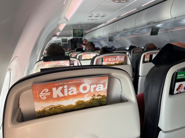 Flug 2 findet von Christchurch nach Auckland statt. Auch hier bietet AIRNZ ein Lounge Angebot. In Christchurch sind somit schöne Aussichten auf das Rollfeld und den Flugbetrieb garantiert. Während der guten Stunde in der Luft Richtung Nordinsel, sitzt man spekulativ auf der linken Seite des Jets. Bei guter Aussicht kann man einen Blick auf den Mount Taranaki erhaschen. Er ist vulkanischen Ursprungs, mit einer perfekten kegelförmigen Silhouette und ist somit eine natürliche Schönheit, die schon Hollywood in einigen Movies begeisterte. Der sogenannte Koru Hour Flight am Abend erweiteret das F&B Angebot um ein Bier oder einen Wein sowie „some crips“. Das Fluggeräte ist etwas größer und der bekannte Airbus A 320, welcher rund um die Welt für viele Fluggesellschaften erfolgreich im Einsatz ist.
