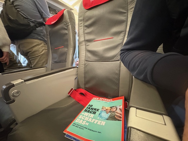 Puh, der ist was es ist, ein Economy Sitz. Durchgesessen, hart und für etwas mehr als eine Stunde Flug irgendwie ok, ohne Premium zu sein. 1A bleibt erste Wahl.