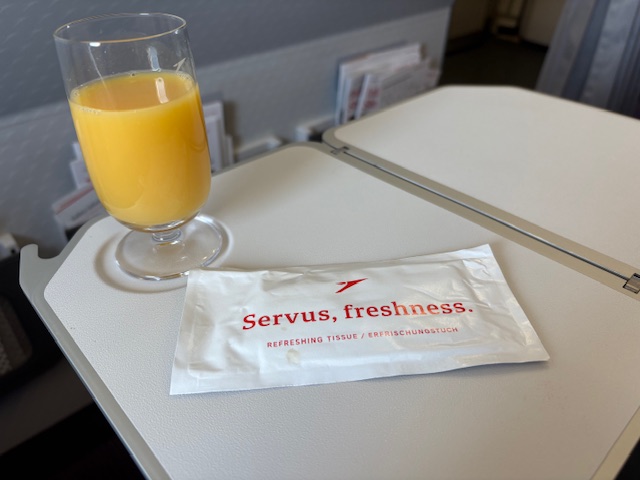 Ab Düsseldorf geht es in 1:40 in Richtung Süden. Der Airbus 320 des Lufthansa Ablegers Austrian bringt die Passagiere sicher und ohne große Turbulenzen vorbei an München nach Wien. Der Sitz wurde durch ein cash-upgrade Gebot erworben, da die meisten Unternehmen logischer Weise nur Economy bezahlen. 90 Euro sind es wert ein wenig mehr an Komfort zu erkaufen, da es neben dem freien Mittelsitz auch etwas mehr Catering, sprich Food & Beverage, mit sich bringt.