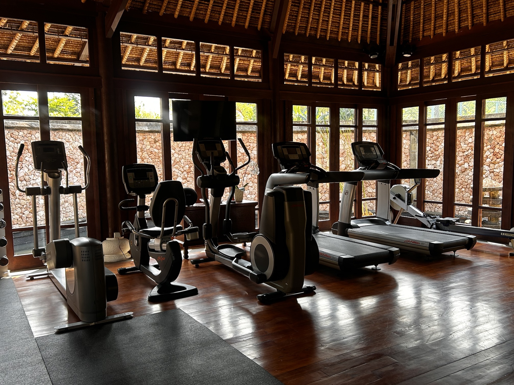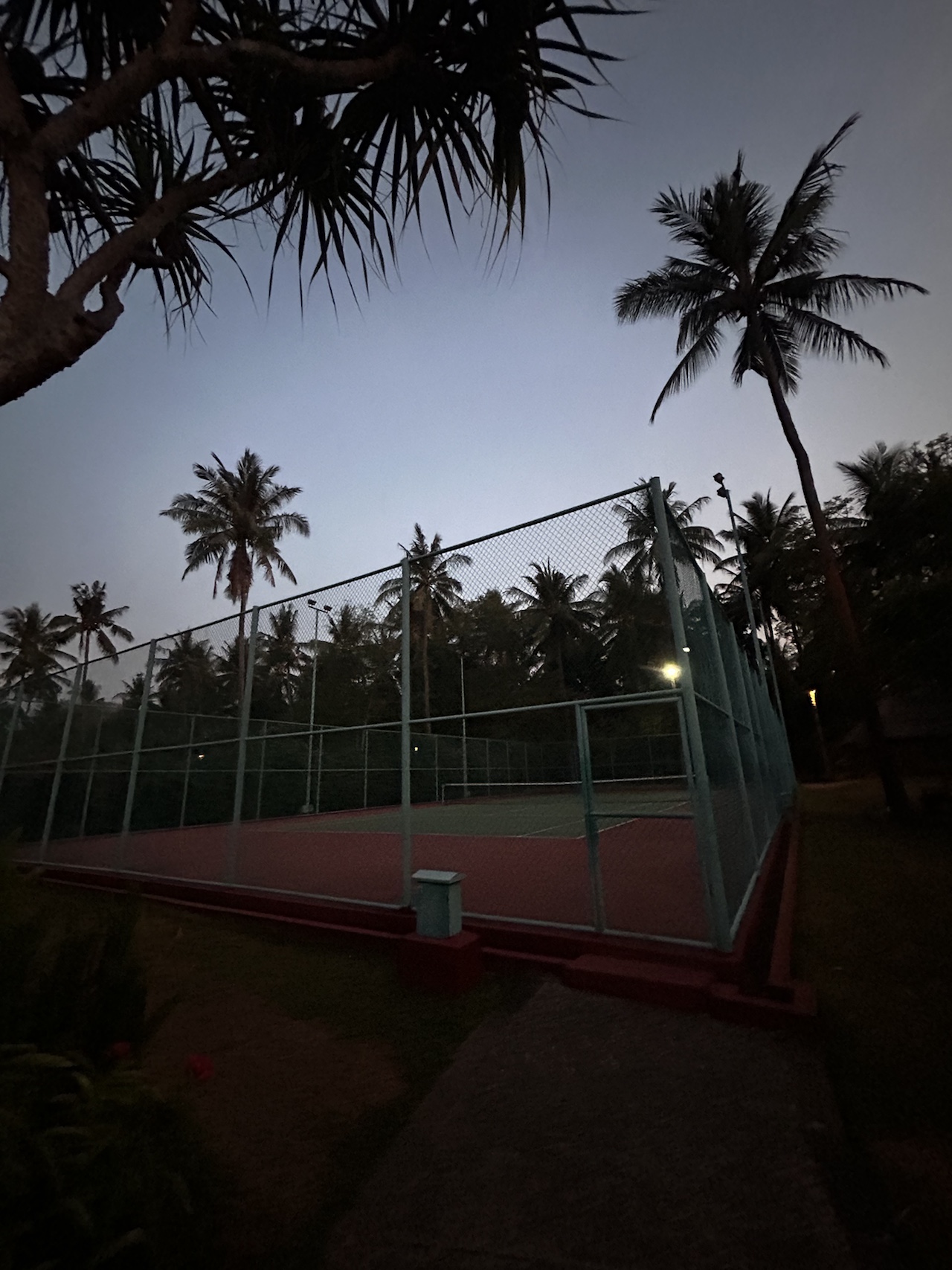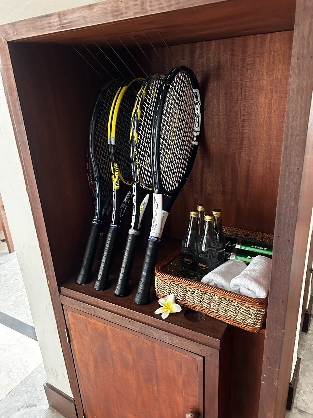 Im Fitnessbereich finden sich alle Geräte vom Stepper bis zum Rad, diverse Hanteln, Laufbänder und es steht immer eine Flasche Wasser für die Hydration bereit. Es werden entsprechend einem 5 Sterne Standard auch Massagen durchgeführt, das Angebot ist über einen QR Code abrufbar. Der anliegende Tennis-Hardcore-Platz würde selbst Steffi Graf oder Andre Agassi glücklich machen, soweit man bei plus 30 Grad diesen Sport ausüben möchte.