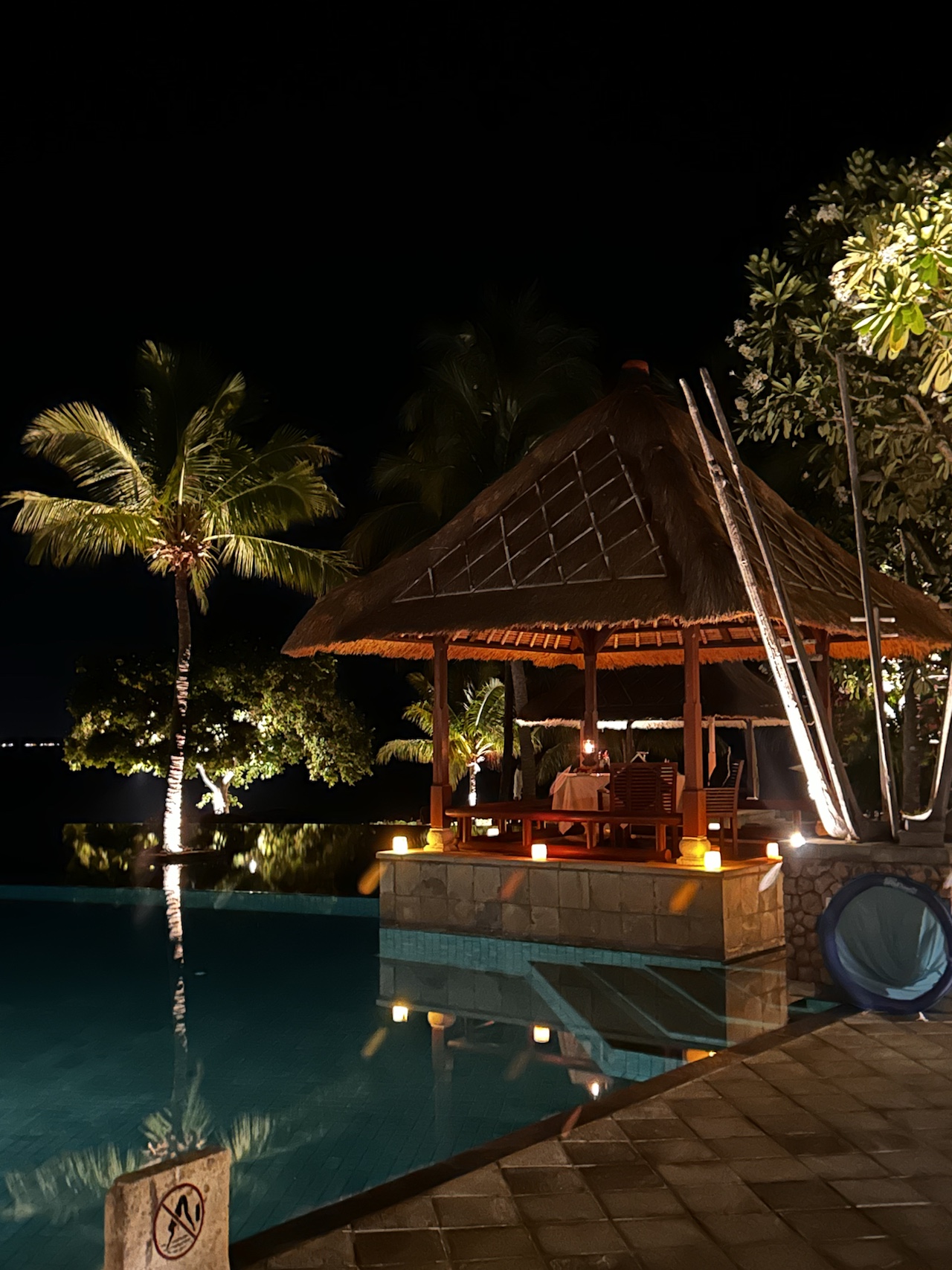 Welch eine schöne Poolanlage mit ihren Palmen, fotografieren ist nonstop angesagt, egal zu welcher Tageszeit. Das eigentliche Schwmmbecken wird eingerahmt von 4 Cabanas, 8 Liegen und weiteren Chill-Out-Zonen. Das Frühstück- und Mittagsrestaurant unmittelbar neben dem Pool gelegen, serviert wertige landestypische als auch internationale Speisen. Für einen abendlichen Happen geht man in das Restaurant, welches man direkt rechts von der Rezeption aufindet. Hier genießt man den abendlich schönsten Blick über die beleuchtete Poollandschaft – garantiert.