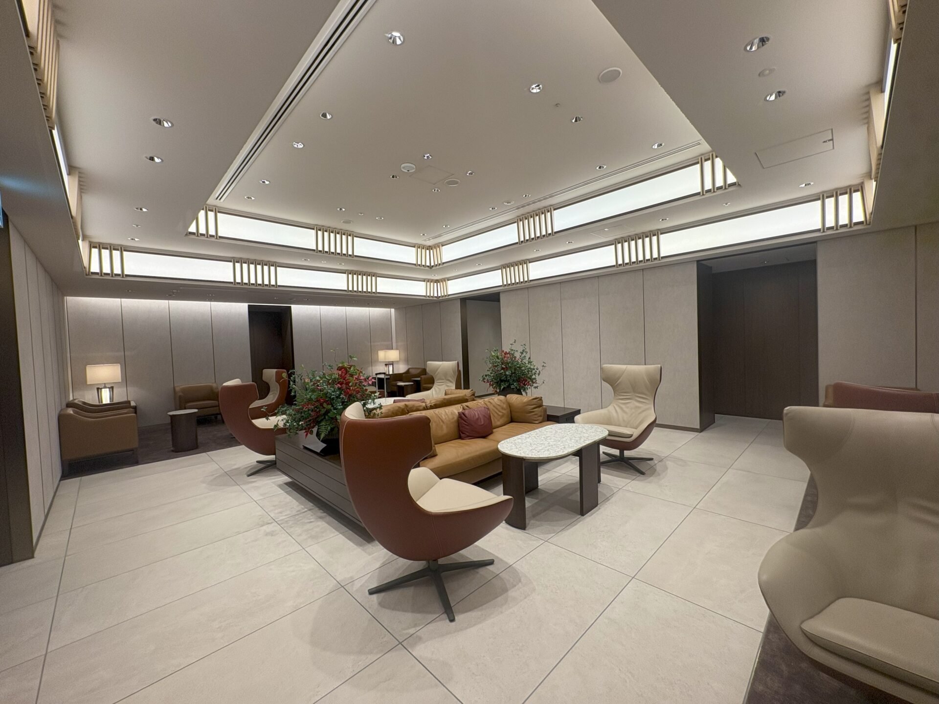 Der Empfang ist japanisch höflich und man wird bis in den Gastraum begleitet. Der Blick aufs Vorfeld erinnert mich an die Qantas International First Class Lounge in Sydney oder den Private Room in Singapore. Ebenfalls gehört die Al Safwa Lounge in Doha, als auch das First Class Terminal in Frankfurt, sowie die Swiss First Class in Zuerich in diese oberste Liga, der weltbesten Lounges. Das fängt bei der Betreuung an und geht bis zum Food & Wine Angebot.