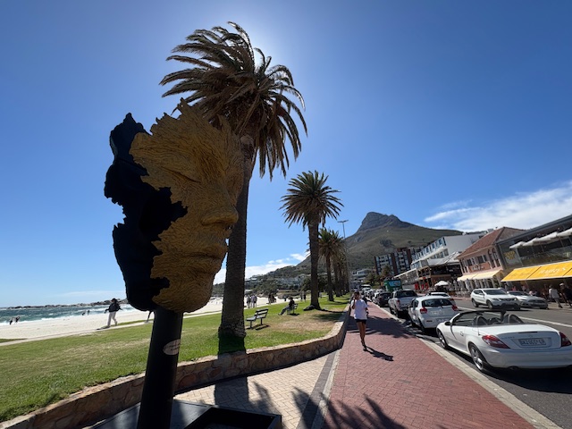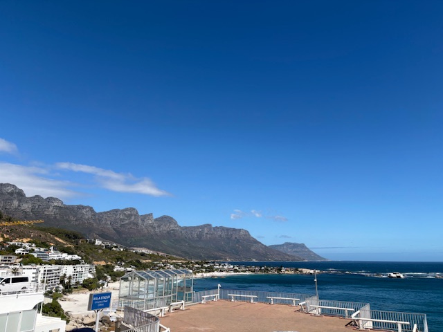 Zurück in der Talstation geht es in die Camps Bay mit ihrem Puderzucker feinen Beach. Schnell holt einen das lifestyle Feeling der Sydney Suburbs, wie Bondi, Coogee oder Cronulla ein. Am Strand wird Volleyball oder Rugby gespielt und so mancher traut sich in das kühle Nass der Wellen. Die Promenade lädt mit reichlich Gastronomie ein, der Frühschoppen mit ein paar Austern und dem Blick auf die immer wieder brechenden Wellen ist auf Weltklasse Niveau!