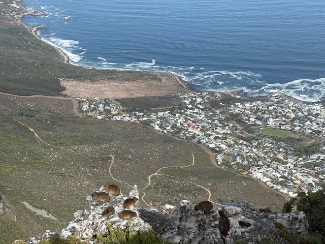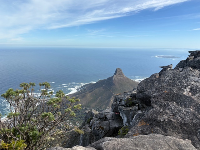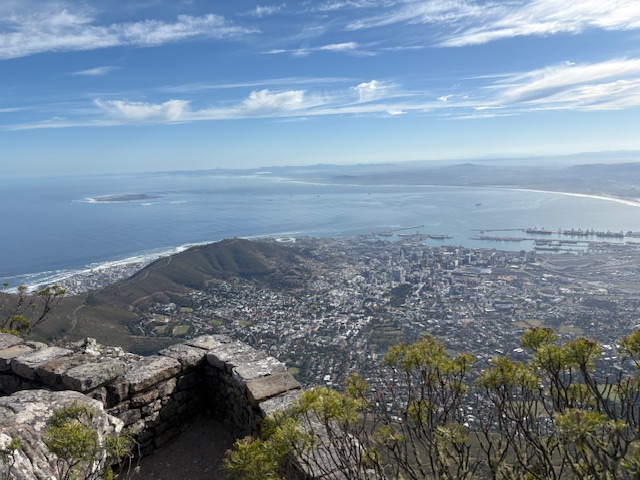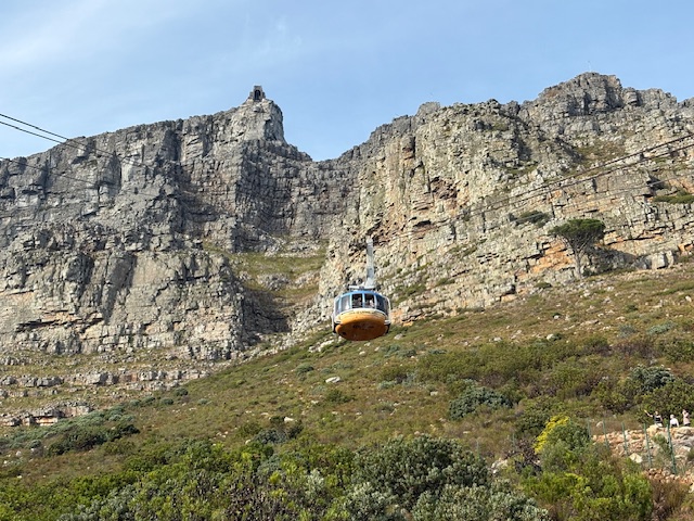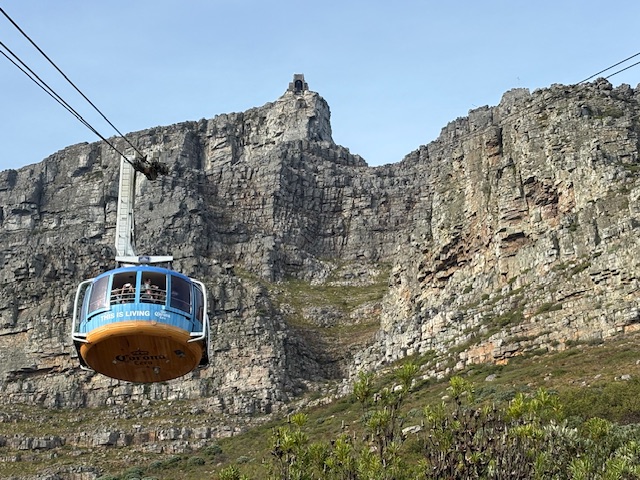 Die Fahrt auf den Tafelberg ist nur bei guten Wetter und entsprechend wenig Wind möglich. Es gibt auch Tage im Jahr an denen die Bahn aus diesen Gründen nicht fährt, also sollte man immer 2-3 Tage in der Stadt als Tourist einplanen, wenn man dort hinauf möchte. Der Blick ist schon von der Talstation kein schlechter und beeindruckend, wird aber nochmals um ein vielfaches besser von der Bergstation aus. Schweifend hinweg über die Stadt, das Meer, bis zur Insel Robben Island, wo Nelson Mandel lange inhaftiert war. Ein befestigter Rundwanderweg über das Plateau ermöglicht ebenfalls Einblicke in andere Himmelsrichtungen und auf dem azur-blauen Atlantik. Die Gondelkabine dreht sich übrigens und jeder Passagier erhält 360 Grad Ausblicke in die umliegende atemberaubende Natur. Respekt zollt man denjenigen Menschen die sich für die Wanderung auf den Table Mountain entschieden haben, was in Teilen auch nicht gerade ungefährlich ist, bei den Abgründen die sich von so mancher Klippe auftun.