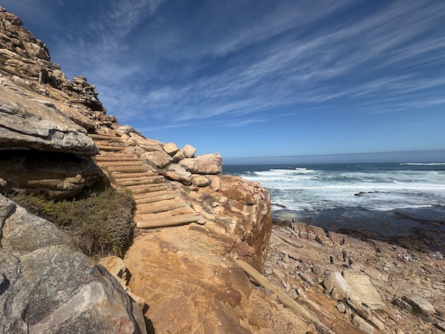 Ein Tagesausflug ist das 44 Kilometer entfernte Kap der Guten Hoffnung, wo man ein gutes Gefühl für die Stärke der Winde und die rauhe Natur bekommt. Dorthin gelangt man am besten über den atemberaubende Chapmans Drive, welcher mit viel baulicher Ingenieurskunst in die Felsenküste integriert wurde. Am gleichnamige Peak ist der Blick über den Ozean nach Hout Bay von absoluter Weltklasse. Ebenfalls einen Stop einlegen sollte man in der Boulders Bay, welche für ihre Pinguine-Kolonien und Felsformationen bekannt ist. Idyllisch gelegen ist der Ort Simon´s Town, mit der Möglichkeit nochmal in Ruhe einen Kaffee oder ein Sandwich zu genießen. Wer die bunten Hütten am Muizenberg Strand ablichten möchte macht auf der Rückfahrt im gleichnamigen Ort kurz halt.