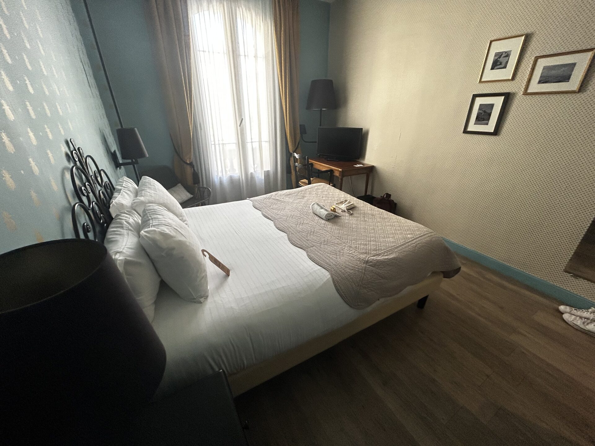 4 Sterne und ein Hotel im Herzen der Stadt Nizza, mit jeweils 10 Minuten Laufweg zum Bahnhof. beziehungsweise dem Strand ist perfekt gelegen. Die Zimmer sind funktional ausgestattet, etwas alter Charme und mit einem Holzboden ein wenig auf neu getrimmt. Einige Tage später treffe ich Professor Dr. Karl Lauterbach, den Gesundheitsminister in der Hotel-Lobby, der seinen Espresso dort schlürft. So schlecht kann dann ja die Unterkunft nicht sein, wenn hier Minister sich die Klinke in die Hand geben und nach einem kurzen angenehmen Chat heißt es Beachtime!