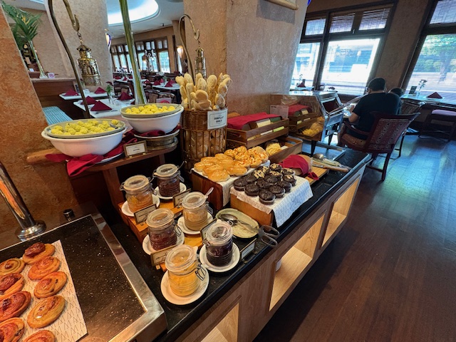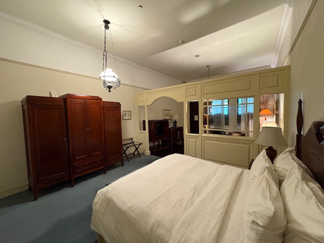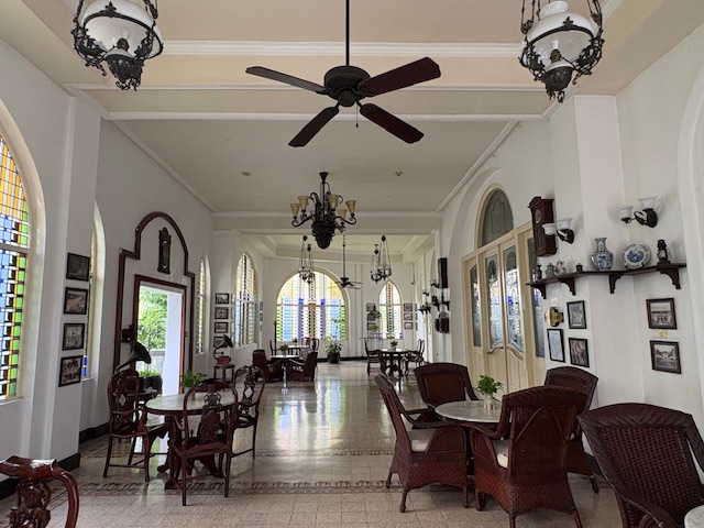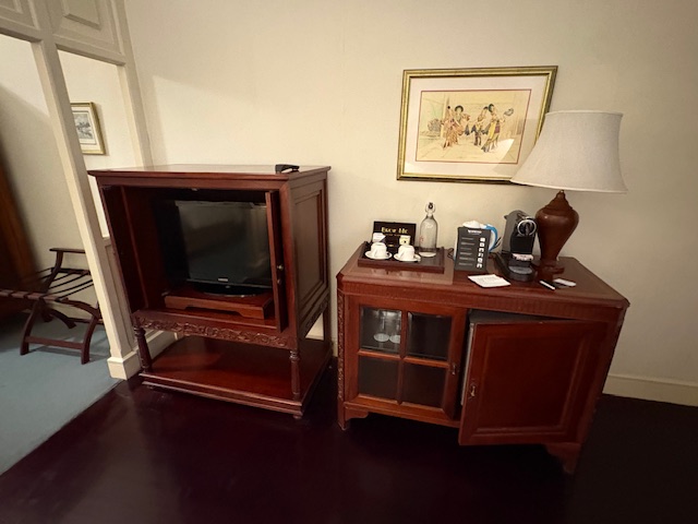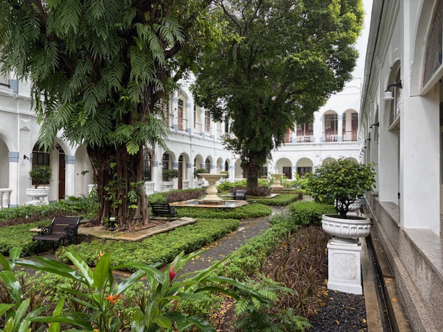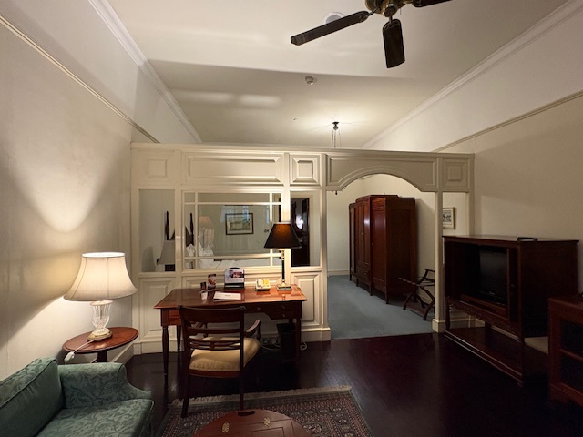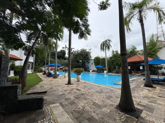 Dieses ist schon eine lokale Ikone, wenn auch schwer in die Jahre gekommen. Wer in die Empfangshalle tritt, macht eine Zeitreise nach 1910! Das Personal ist sehr zuvorkommend, die Park ähnliche Anlage ruft gedanklich zumindest eine Verbindung zum legendären Raffles Hotel in Singapore hervor. Diese ist gepflegt und gepaart mit der weißen Fassade eine entspannte Atmosphäre. Allerdings sind die Zimmer schwer in die Jahre gekommen, die Klimaanlage funktioniert nicht mehr so richtig, diese läuft auf „Dauerkalt“ und entsprechend ergeben sich in so einigen Räumlichkeiten modrige Gerüche, die auf zu viel Feuchtigkeit hinweisen. Das Foyer bietet diverse Sitzmöglichkeiten, eine Bar die durchaus gute Cocktails mixt, ein Essensangebot das ebenfalls positiv zu überraschen weiss. Ebenfalls wird an 360 Tagen im Jahr eine große Frühstücksauwahl als Büfett gereicht, eine Eierstation und so einige lokale Spezialitäten wie asiatische Suppen. Die Gym ist aus den 80er Jahren und der Pool braucht zwangsläufig, wenn man in der 5 Sterne Liga spielen möchte, ein make up!