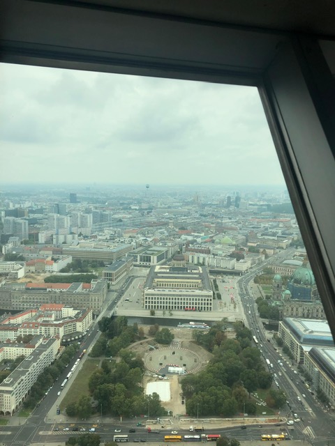 Direkt nach dem Essen (siehe unten) geht es zum Fernsehturm Berlins. Der 204 Meter hohe Turm lässt sich für rund 30€ besichtigen und bietet einen 360-Grad-Rundum-Blick über Berlin. Die Panoramasicht lässt einen über Berlin blicken und öffnet neue Perspektiven auf die Hauptstadt. Das drehende Restaurant ein Stockwerk höher, welches ich aber nicht getestet habe, muss auch imposant sein. Dem Wetter geschuldet sah man nicht ganz so weit wie bei Sonnenschein und freiem Himmel, egal. Die 30€ waren es wert.