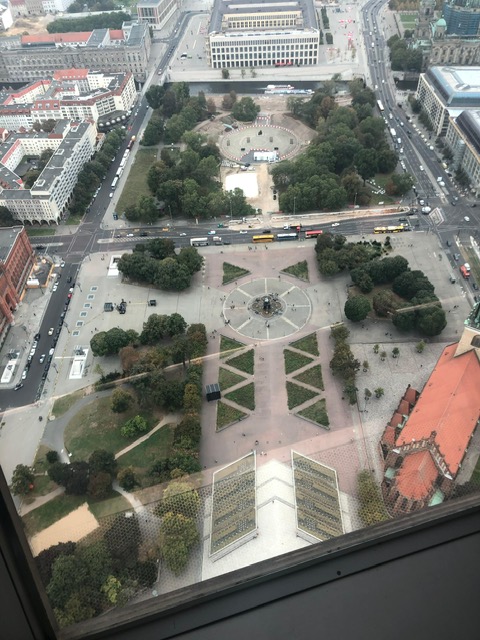 Anschließend geht es direkt weiter ins Humboldt Forum, wo ein Museumsbesuch ansteht. Von der Dachterrasse aus kann man den „Telespargel“ von unten begutachten (später auch noch von oben).