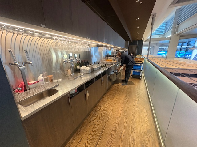…ist schonmal hochwertig. Im Mittelpunkt steht eine große U-förmige Bar, ähnlich wie der Finnair Lounge in Helsinki, an der bedient wird. Dann gibt es kleine Ecken, Sofa ähnlich, aber auch Tische an denen man ebenfalls einen aufmerksamen Service erleben darf. Dies ist im Abgleich mit sonstigen und vor allem den meisten Lounges in der Welt eine Ausnahme. Restaurant Bereich mit Bedienung sind doch sehr oft den First Class Orten vorbehalten, wie dem Private Room in Singapore oder den First Class Lounges der Lufthansa Group.