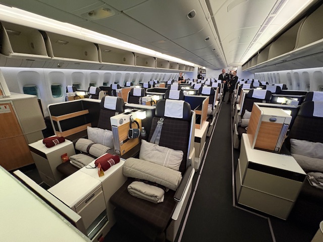 Zuerst boarded immer die First Class und die absoluten Top-Tier (HON) Gäste der Airline, danach die Business, Senatoren und Star Gold Mitglieder. Im Anschluss folgt die Premium- und Economy Class. Am Platz gibt es ein Getränk nach Wahl, diese fällt auf einen guten Non-Vintage Champagner. Die Klassen teilen sich in 8 First Class Suiten, 62 Business, 24 Premium- und 226 Economy Class Sitze ein.