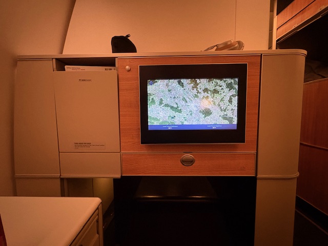 Die Langstrecke in das geliebte Singapore und übernimmt wie immer eine Boeing 777-300er, der Sitzplatz ist direkt hinter der First Class, ein sogenannter Throne-Seat (Einzelplatz) – 4 A. Auch wenn die Bestuhlung schwer in die Jahre gekommen ist, ist sie immer noch besser als auf vielen Fliegern die 2-2-2 der Lufthansa. Allerdings gilt es zum Beispiel bei den Reihen dahinter (2-2-1), soweit man am Fenster sitzt, beim Aufsuchen des stillen Örtchens auf diesem Nachtflug, über den Sitznachbarn „zu klettern“.