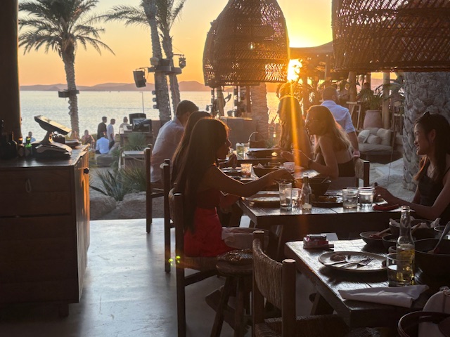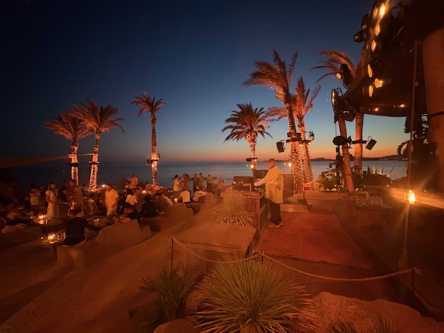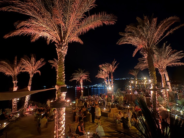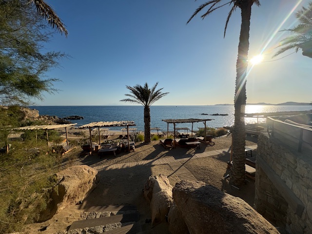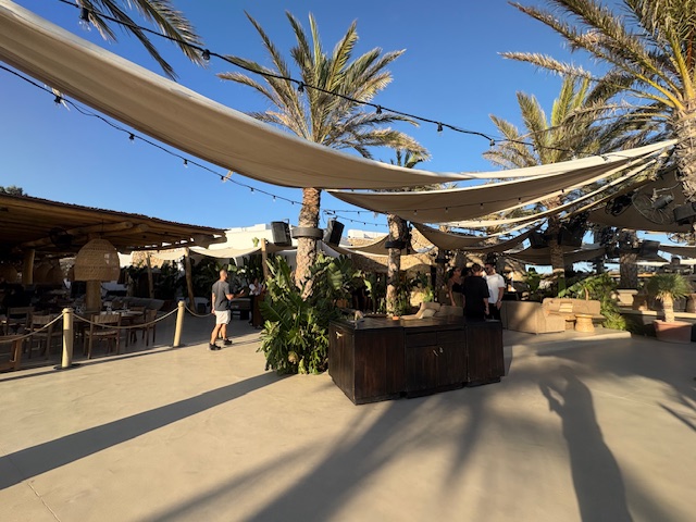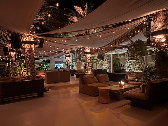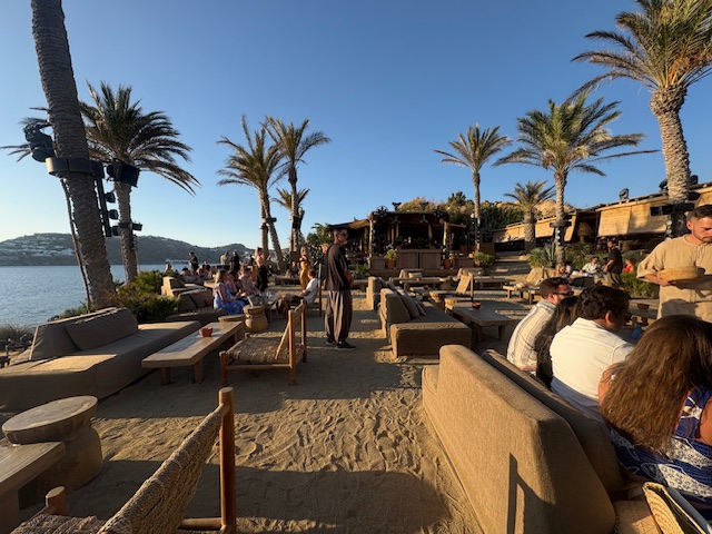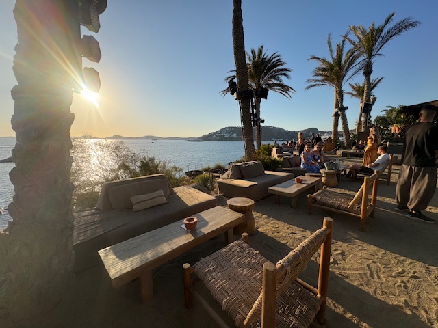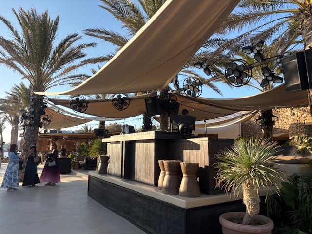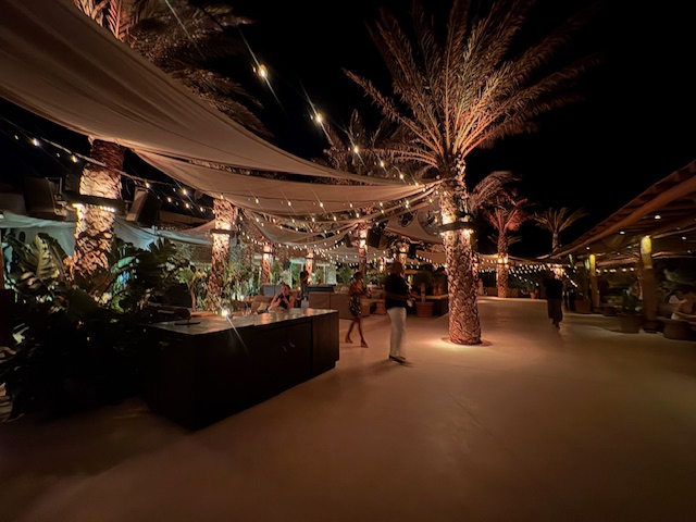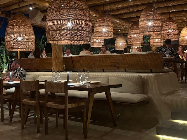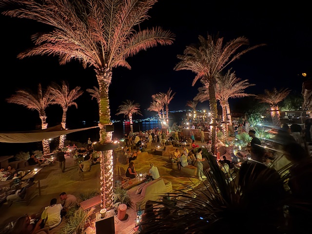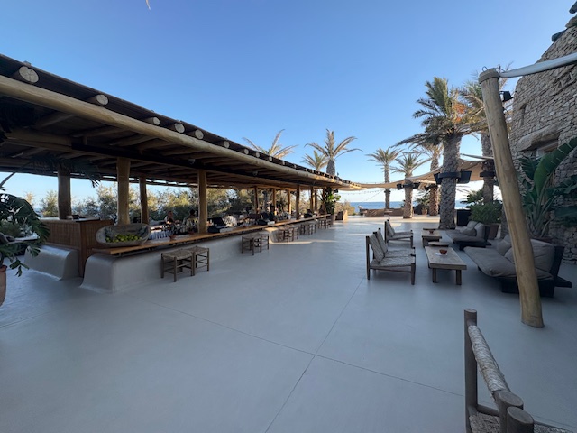Um hier reinzukommen braucht man eine online Reservierung. Die differenziert sich in die Segmente Restaurant, Sunset Beach, Beach, Terrasse, einen privaten Event oder das Soho Roc House. Im unserem Fall wird es eine Restaurant Buchung mit einem Aperitif auf der Terrasse vorab. Der Sunset Beach ist konstant auch in der Nebensaison täglich ausgebucht, kein Wunder wenn man die Location mit ihrer Pracht dann vor Ort erlebt. Hier tanzen die Nacht nicht nur Promis durch, die von ihrer Superyacht per Beiboot abgesetzt werden, auch Köngliche Staatsoberhäupter mischen sich unter die Besucher.