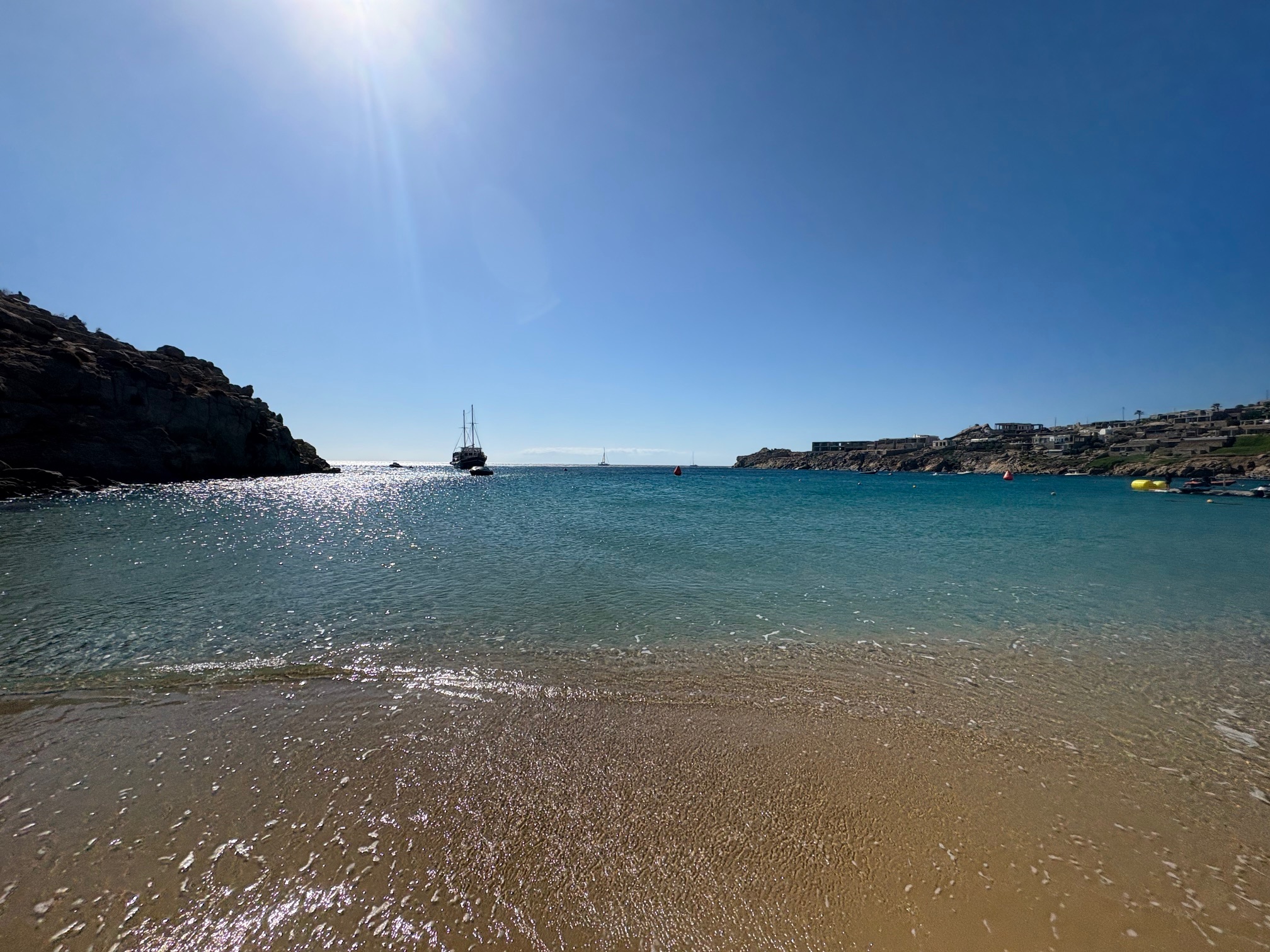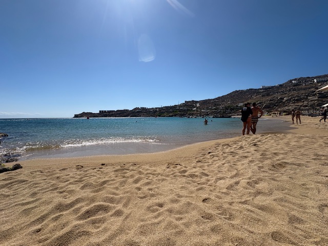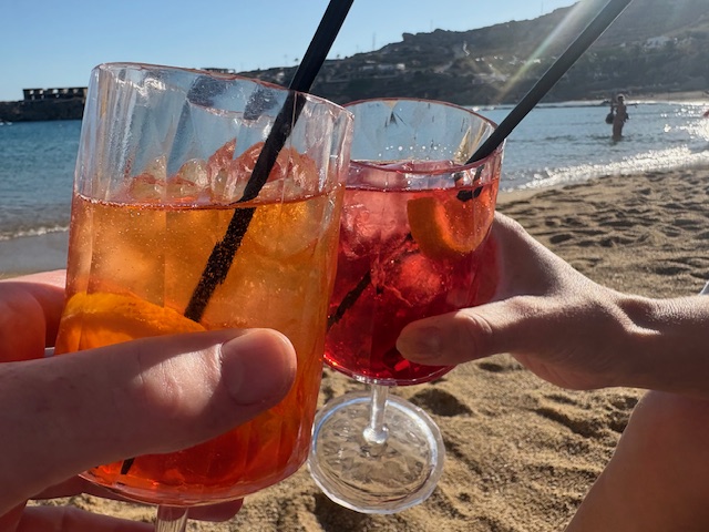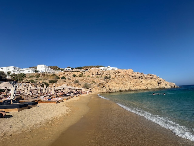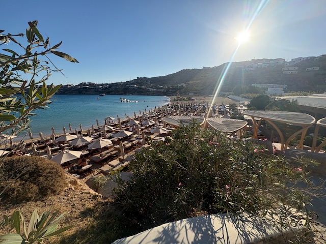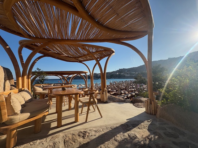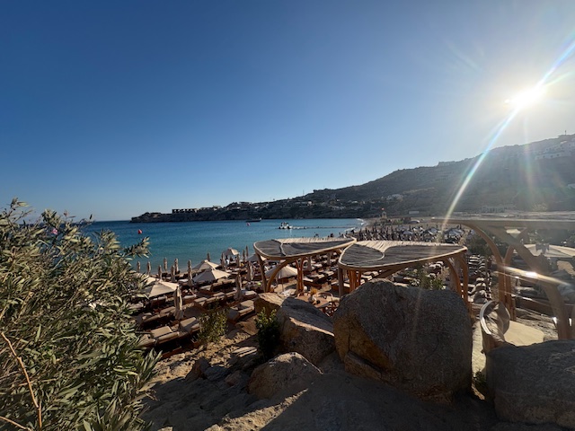 Sicherlich ist die Location eine gute. Allerdings sind die Preise teilweise „entfesselt“. Der Flaschenpreis für einen Rose beginnt bei 80 Euro, das Bier oder eine Flasche Wasser kostet 9 Euro. Der Burger ist nur Durchschnitt, mit 27 Euro allerdings Premium bepreist. In Summe ist es eine Erfahrung, Mykonos ist ein Hotspot der teuer kommt und das nicht nur in den Beach Clubs.