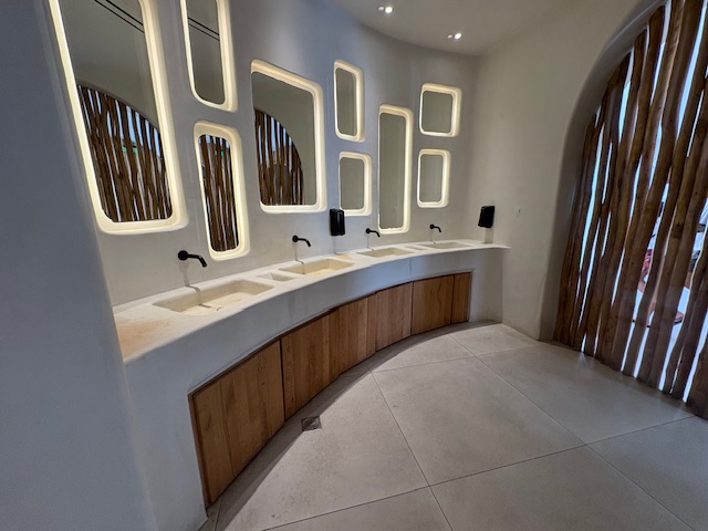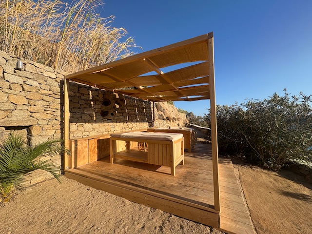 Ab der Mittagszeit wird die Musik im Hintergrund etwas präsenter ohne zu stören. Ab 15:00 Uhr wird dann schon aktiv aufgelegt, DJ´s aus ganz Europa geben sich hier in der Saison die Klinke in die Hand. Wer zwischendurch eine Massage benötigt bewegt den „lazy ass“ in den Spa Bereich. Die Toiletten sind top sauber, einen Umkleidekabine gibt es auch.