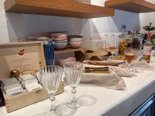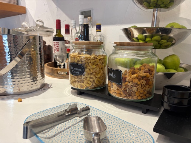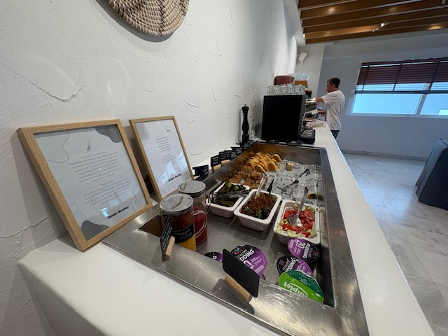 Im Food Angebot ist ein etwas süßlicher Linsensalat, der griechische darf natürlich nicht fehlen und die gefüllten Weinbergblätter passen perfekt in das mediterrane Bild. Darüber hinaus gibt es Salami-Sandwiches oder ein mit Gemüse gefüllter Wrap. Dazu läuft etwas chillige Musik im Hintergrund, so dass jeder Gast weiter im Insel-DJ groooooooooove bleibt.