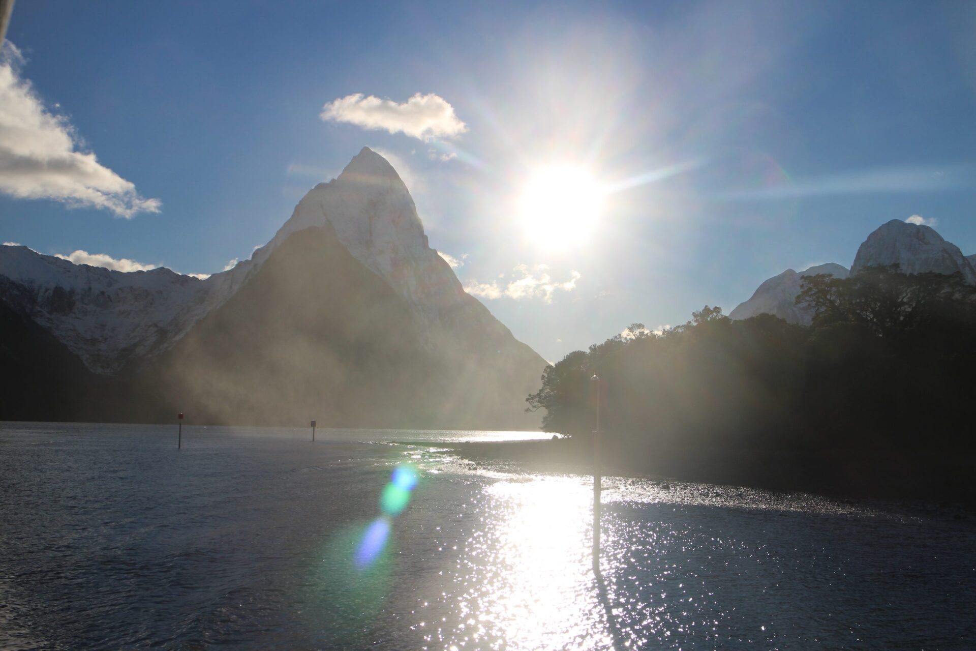 Leider stoppt heute im Sound ein Carnival Cruise Ship mit geschätzten 4000 zusätzlichen Gästen „in town“. Was auf der einen Seite den Geschäften üppige Zusatzumsätze beschert ist für langjährige Neuseelandbesucher ein „graus“. Typische Pauschaltouristen betreten das andere Ende der Welt nun seit einigen Jahren, welche durch erfolgreiche Filme mit „Hobbit´s“, oder auch „Herrn der Ringe“ immer mehr an Beliebtheit gewonnen hat. Nicht zu unterschätzen ist auch die größere Anzahl an reisefreudigen und finanzkräftigen Asiaten die von Emirates und Co „gebracht“ werden. Allerdings findet man diese Touristen eher wenig auf den vielen Wanderwegen, weil es sich dort doch recht schwer mit Louis Vuitton Schuhen laufen lässt oder es einfach kein Spaß macht 15 km lang an keinem Shop vorbeizukommen.