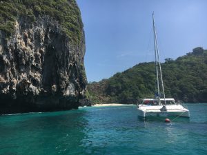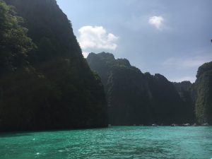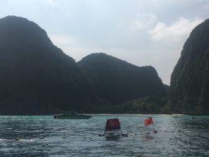 Von Koh Phi Phi geht es mit dem longtail boat für einen Tagesausflug nach Koh Phi Phi Leh. Die Fahrt zur Nachbarinsel erinnert mich an die Bilder von Palau, steile grün bewachsene Felsen die aus dem Meer ragen und sich abwechseln mit traumhaften Buchten wie im Film „The Beach“. In der Loh Samah Bay wo es sich gut schnorcheln lässt bekommt man viele bunte Fische zu Gesicht aber leider auch hier: Plastik und meiner Meinung zu viele Besucher. Warum reduziert Thailand die Besucherzahl nicht und nimmt wie auf den Galapagos bis zu 100 US – Dollar Nationalpark Gebühr? Ähnlich wie ein späterer Eindruck beim Besuch des Königspalastes in Bangkok und den schier unzähligen Besuchern, scheint „money first“ das Stickwort zu sein. Die berühmte May Bay wurde vor 18 Monaten gespeert hat um den Strand und das Riff eine Regenerationszeit zu ermöglichen. So vertieft sich bei mir der Eindruck das der Mensch die Umweltthemen vermutlich nicht in den Griff bekommt, den gerade beim Thema Plastik ist es ja grotesk das bis zu 70 % der gesammelten Menge in Deutschland dann per Schiff in die Welt verfrachtet wird! Wenn ein Land wie Deutschland nicht vollständig recyceln kann, warum soll dann bitte Asien sich um unsere Reste kümmern? Wenn schon via „grünen Punkt“ gesammelt wird, warum muss er dann exportiert werden? Ich bin gespannt auf die Lösungsansätze der Politik, in der Zwischenzeit heißt es Müll Vermeidung und ggf. auch sein eigenes Reiseverhalten in der Zukunft zu überdenken!