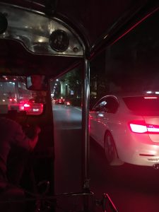 Diese super crazy town, welche ich zum 5. oder 6. Mal besuche verspricht nie langweilig zu werden! Streetfood in Verbindung mit Ultrafrische wohin man schaut, eine super lebendige und hochwertige Hotelszene, Massagesalons an jeder Strassenecke und hochmoderne shopping malls – BKK eine Stadt die nicht im Ansatz auch mal eine Stunde schläft. Da gehört natürlich auch eine Tuk Tuk Fahrt dazu. Was als einfaches und günstiges Fortbewegungsmittel galt ist mittlerweile durch die Chinesen ein exklusives geworden, da sie scheinbar jede geforderte Rate bezahlen und somit einen veränderten Markt schaffen. Hintergrund ist anders als Taxen fahren die Rikschas ohne „Meter“ der jeden Baht festhält – alles ist Verhandlungssache. An subtropisch heißen Nächten allerdings sind die Tuk Tuks ein Transportmittel mit hohem Vergnügungsfaktor und meiner Meinung bei dem exponierten Fahrstil der Thai Chauffeure auch nicht immer ganz ungefährlich, Gurte sind schließlich ein Fremdwort!