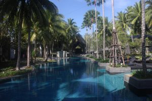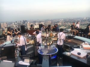 Die Herbergswahl ist diesmal das Marriott Hotel in Sukhumvit, „amerikanische“ 5 Sterne mit einer fantastischen Rooftop Bar. Schwer beliebt und im Ansatz, da zur happy hour nicht nur für Hotelgäste, etwas überlaufen. 130 Euro pro Nacht ist für die gebotene Qualität, die Lage und für 2 Personen ein fairer Preis, auch wenn das Frühstück nicht inkludiert ist. Allerdings gibt es den Kaffee in hochwertiger Qualität an jeder Straßenecke – Frage des Tages: Was gibt es mehr in BKK, Massage Salons oder Kaffee´s?