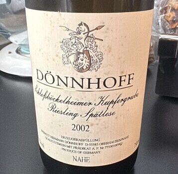 Nicht nur Tannin reiche Rotweine lassen sich gut lagern. Spät- oder Auslesen mit einem gesunden Anteil an Restzucker vermögen sich ebenso positiv zu verändern. Das Weingut Dönnhoff mit seinen Säften, die in deutschen Holz-, Eichen- als auch Stahlfässern ausgebaut werden, vermag mit dieser gereiften Spätlese zu überzeugen.